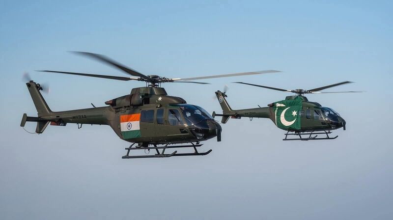 சமகாலத்தில் எல்லையில் கடும் மோதலை எதிர்கொண்டதுடன், இன்றுவரை நெருக்கடியான மற்றும் பதட்டமான உறவை பகிரும் இந்திய மற்றும் பாகிஸ்தானின் இராணுவ ஹெலிகப்டர்கள் இலங்கையில் மீட்புப் பணியில் செயற்படுகின்றன.